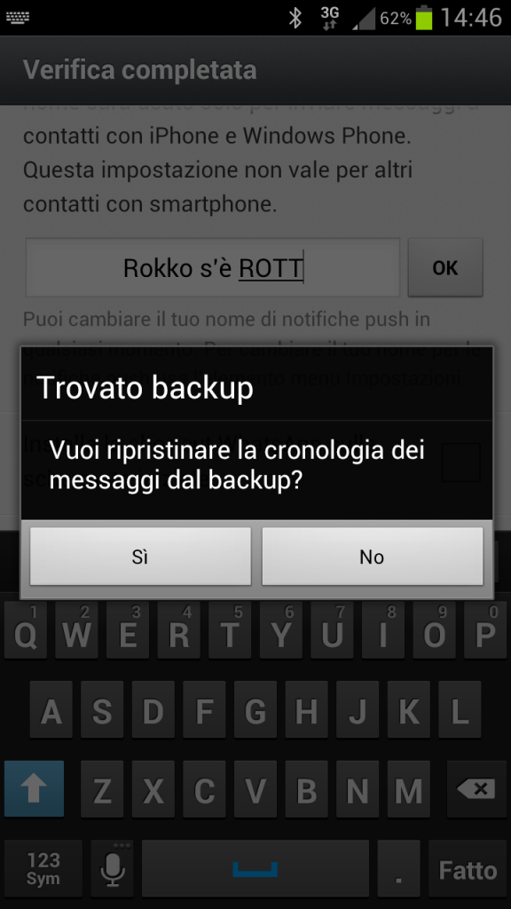 Sappiamo bene come con l’avvento degli ultimi smartphone di fascia alta sia possibile utilizzare applicazioni per lo scambio di messaggi. Molteplici risultano essere questi tipi di servizi che tramite la connessione dati del dispositivo permettono l’invio di semplici messaggi di testo, ma anche file multimediali, come foto e video. Tra di esse senza dubbio la più utilizzata è WhatsApp Messenger, che però sembra avere qualche problemino di privacy. Noi lo abbiamo trovato e vi riportiamo la nostra esperienza.Il nostro caro Dario qualche giorno fa ha acquistato un Samsung Galaxy S III usato. Fin qui nulla di male. Infatti il dispositivo era stato puntualmente rispristinato alle impostazioni di fabbrica, come Android sappiamo permette, proprio dal precedente possessore. Dario ha come solito seguito la procedura guidata di inizializzazione ed al momento di installare WhatsApp Messenger gli è apparsa la finestra con la possibilità di ripristinare il backup dei messaggi precedenti.